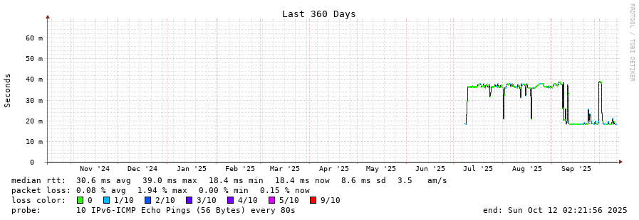 traceroute to 2620:119:53::53 (2620:119:53::53), 30 hops max, 80 byte packets - Generated at 2025-10-12 02:15:01