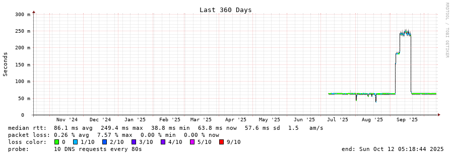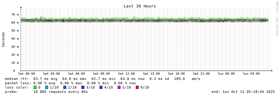 traceroute to 2001:7fe::53 (2001:7fe::53), 30 hops max, 80 byte packets - Generated at 2025-10-12 05:00:01