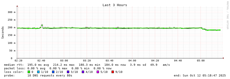 13 > 2804:680:a00::8 (2804:680:a00::8) [AS22381/AS262589] 181.160ms 181.306ms 181.138ms