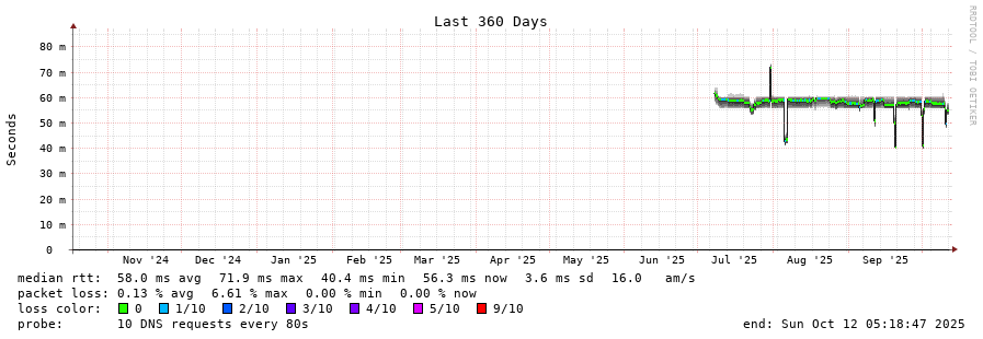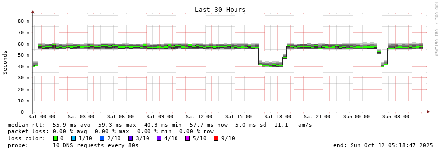 traceroute to 2001:dc3::35 (2001:dc3::35), 30 hops max, 80 byte packets - Generated at 2025-10-12 05:15:01