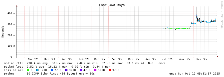 15 > 180.87.175.33 (180.87.175.33) [AS6453] 281.936ms 281.810ms 282.090ms