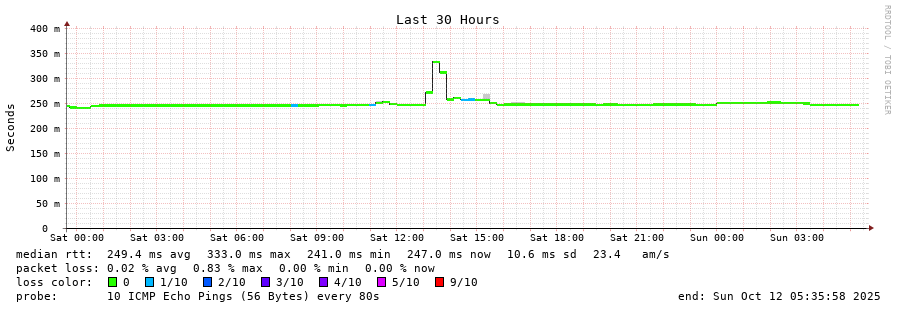 traceroute to 176.34.56.254 (176.34.56.254), 30 hops max, 60 byte packets - Generated at 2025-10-12 05:30:01