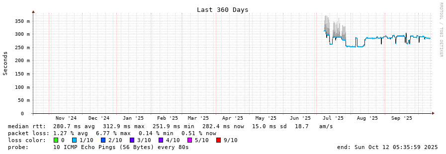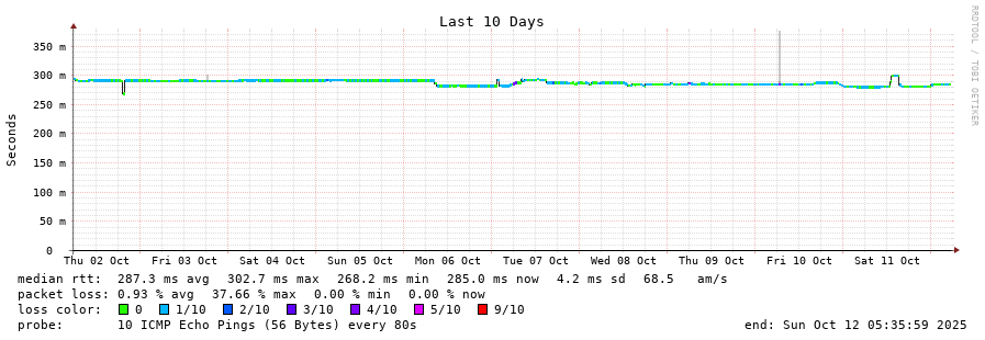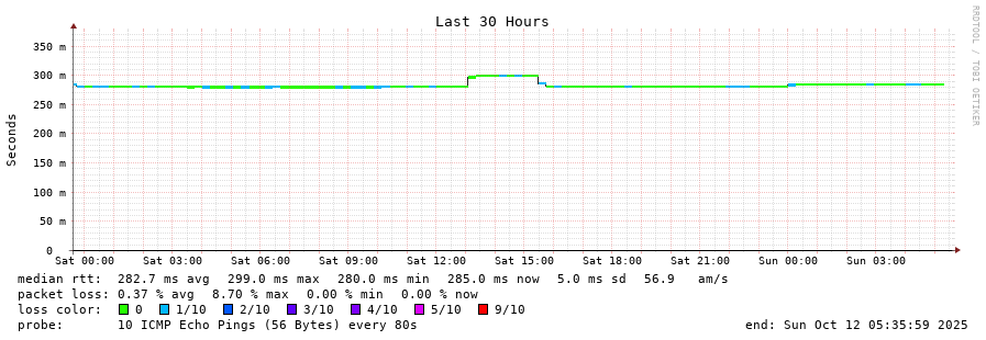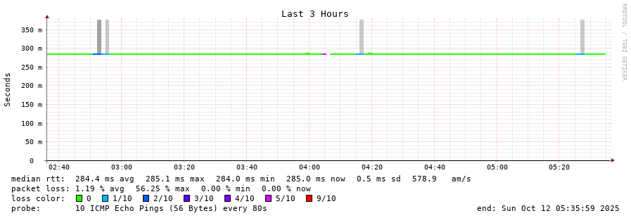14 > 130.105.0.25 (130.105.0.25) [AS23944] 284.004ms 284.063ms 284.204ms