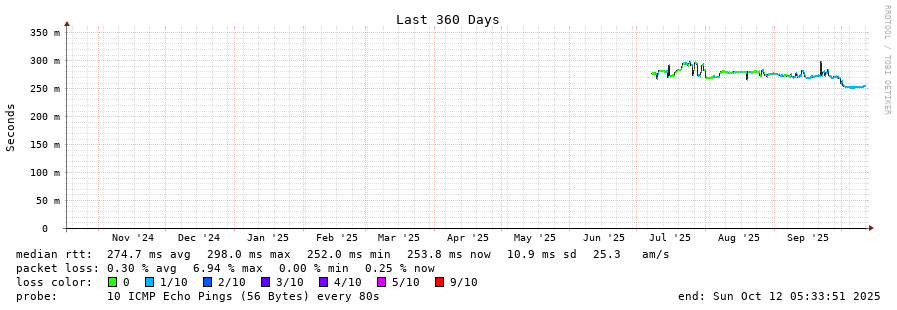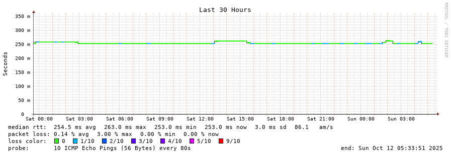 14 > ve955.core1.kul1.he.net (184.104.197.102) [AS6939] 256.403ms 256.170ms 256.441ms