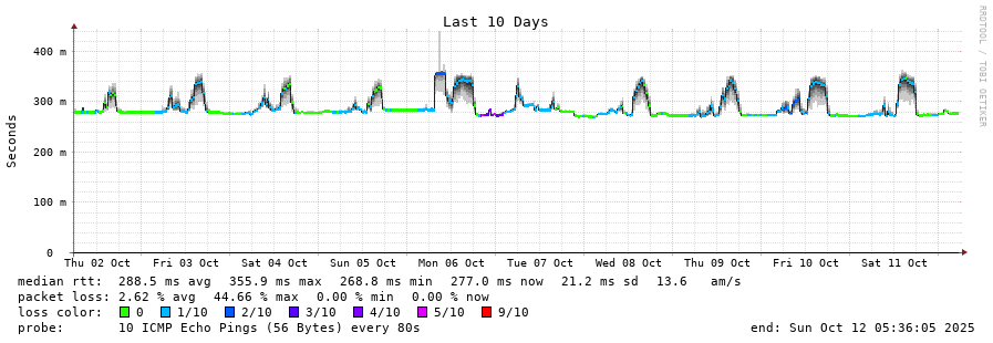 traceroute to 122.160.40.1 (122.160.40.1), 30 hops max, 60 byte packets - Generated at 2025-10-12 05:30:01
