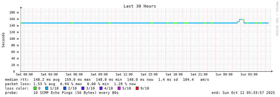 13 > 163.139.138.7 (163.139.138.7) [AS2519] 149.767ms 149.780ms 149.712ms