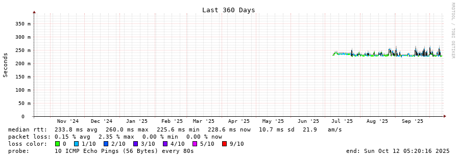 traceroute to 175.176.168.1 (175.176.168.1), 30 hops max, 60 byte packets - Generated at 2025-10-12 05:00:01