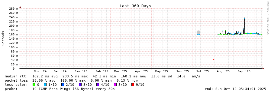 traceroute to 216.218.221.6 (216.218.221.6), 30 hops max, 60 byte packets - Generated at 2025-10-12 05:30:01
