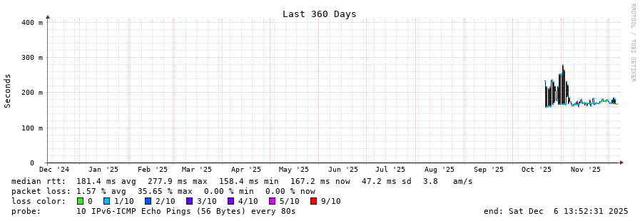 traceroute to 2001:4350:1:1::ff90 (2001:4350:1:1::ff90), 30 hops max, 80 byte packets - Generated at 2025-12-06 13:45:01