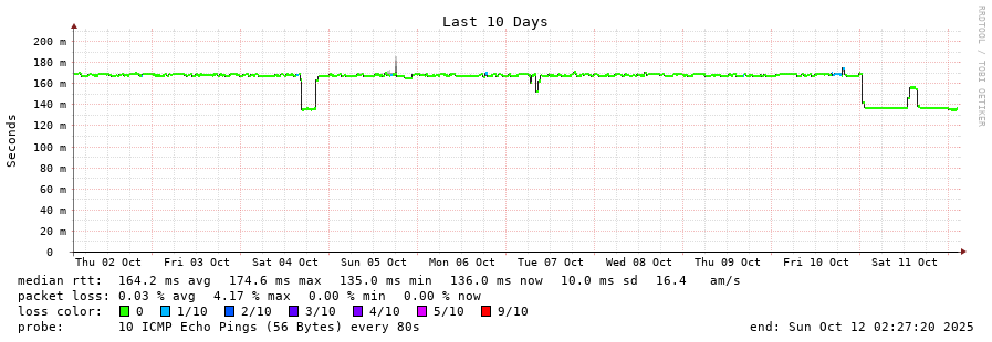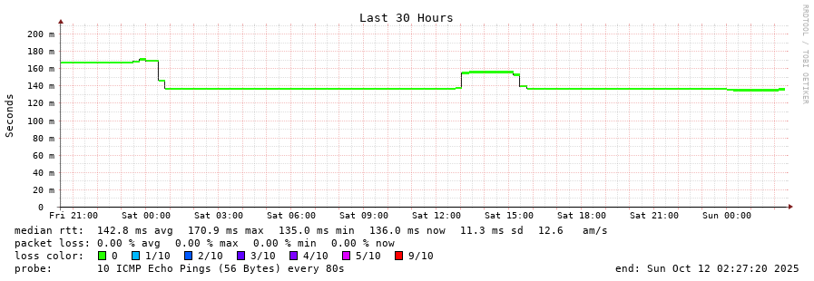 13 > ae9-ucr1.por.cw.net (195.2.31.137) [AS1273] 136.525ms 136.505ms 136.614ms