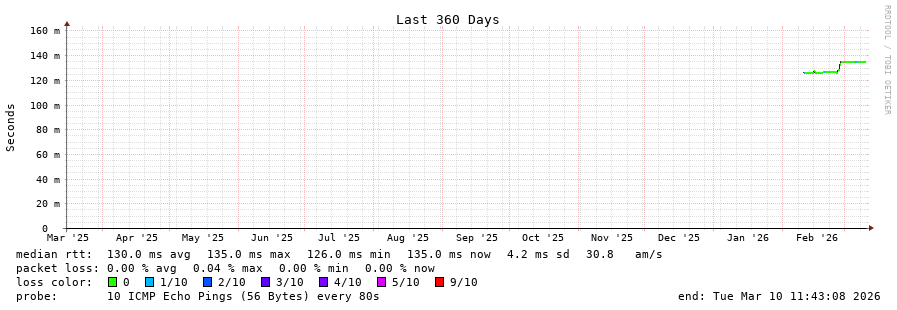 11 > be102.ams-gsa1-sbb1-nc5.nl.eu (54.36.50.244) [AS16276] 128.686ms 128.658ms 128.557ms