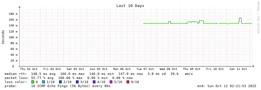 23 > atlas-probe.ip6.fccn.pt (193.136.2.26) [AS1930] 147.220ms 147.204ms 147.212ms