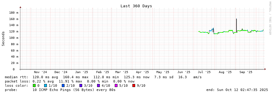 traceroute to 96.17.193.1 (96.17.193.1), 30 hops max, 60 byte packets - Generated at 2025-10-12 02:45:01