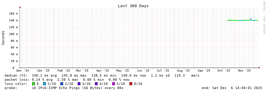 traceroute to 2001:b68:d:0:ee08:6bff:fe73:2da0 (2001:b68:d:0:ee08:6bff:fe73:2da0), 30 hops max, 80 byte packets - Generated at 2025-12-06 13:45:01