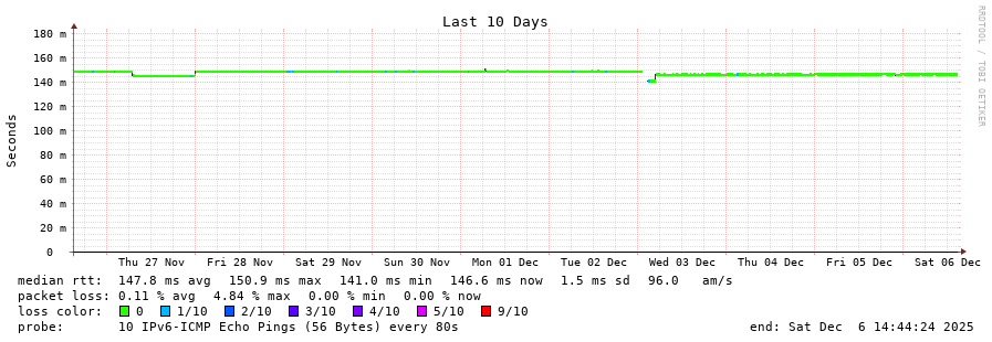 traceroute to 2001:b68:d::28 (2001:b68:d::28), 30 hops max, 80 byte packets - Generated at 2025-12-06 13:45:01