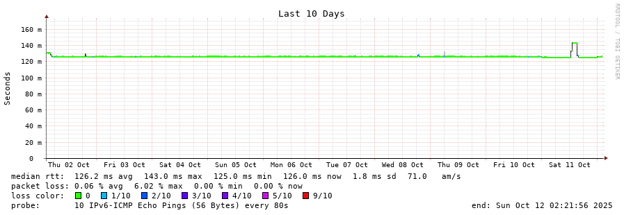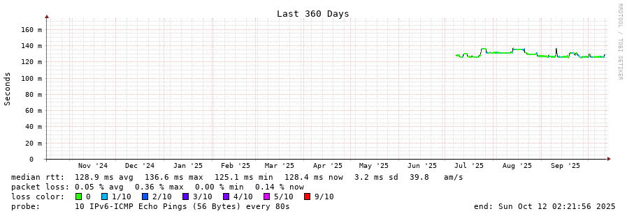 traceroute to 2a01:4f8:d0a:529e::2 (2a01:4f8:d0a:529e::2), 30 hops max, 80 byte packets - Generated at 2025-10-12 02:15:01