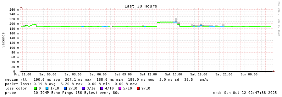 traceroute to 77.66.180.119 (77.66.180.119), 30 hops max, 60 byte packets - Generated at 2025-10-12 02:30:01