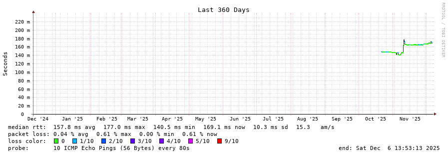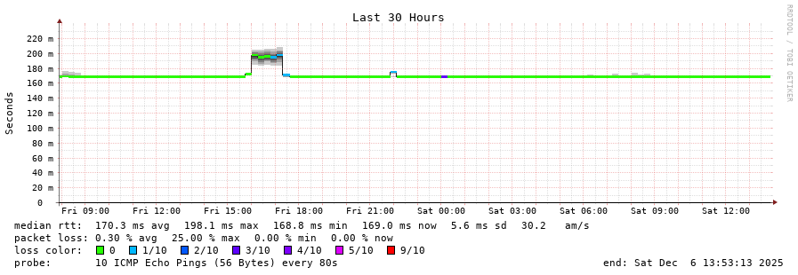 traceroute to 85.114.46.237 (85.114.46.237), 30 hops max, 60 byte packets - Generated at 2025-12-06 13:30:01