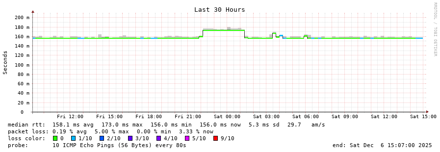 12 > buc-vox-pr1.zet.net (103.246.249.6) [AS6204] 156.127ms 153.134ms 153.136ms