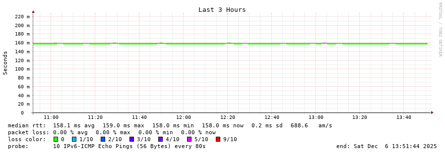 13 > 2a0b:2f00:0:234::151 (2a0b:2f00:0:234::151) [AS48112] 158.357ms 158.398ms 158.329ms
