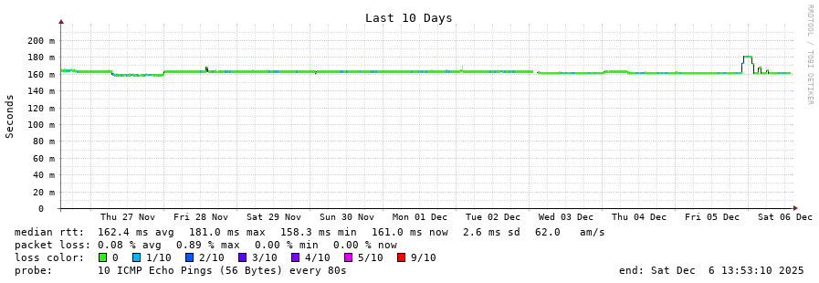 13 > de-cix.v4.telecomit.ro (80.81.195.242) [*] 151.600ms 150.616ms 150.648ms
