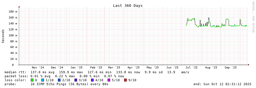 traceroute to 213.163.76.133 (213.163.76.133), 30 hops max, 60 byte packets - Generated at 2025-10-12 02:15:01