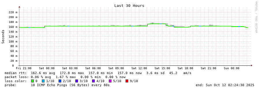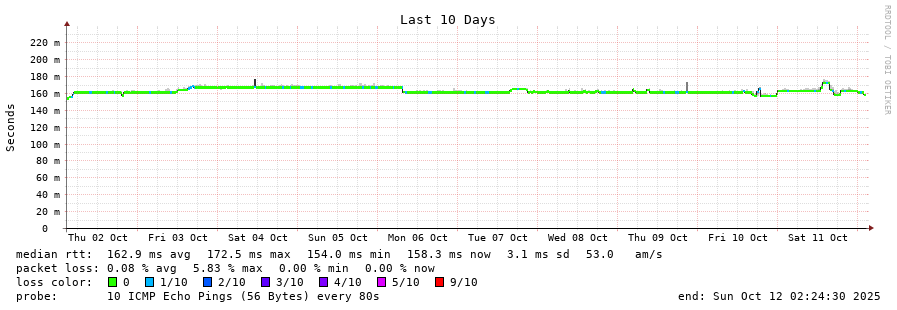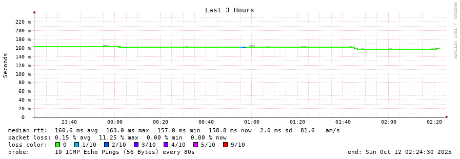 15 > 86.107.193.1 (86.107.193.1) [AS203346] 156.647ms 156.579ms 156.525ms