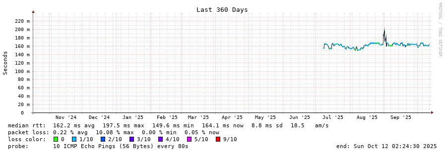 traceroute to 86.107.193.1 (86.107.193.1), 30 hops max, 60 byte packets - Generated at 2025-10-12 02:15:01