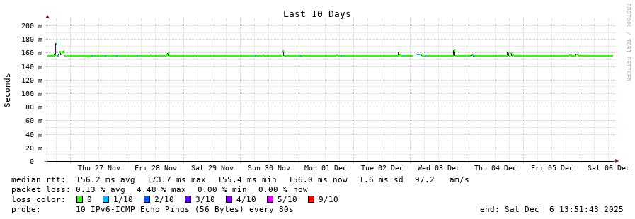 traceroute to 2a03:8f84::f1b6:9702:29c:9062 (2a03:8f84::f1b6:9702:29c:9062), 30 hops max, 80 byte packets - Generated at 2025-12-06 13:45:01
