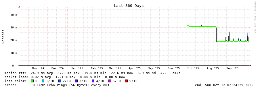 traceroute to 217.160.80.1 (217.160.80.1), 30 hops max, 60 byte packets - Generated at 2025-10-12 02:15:01