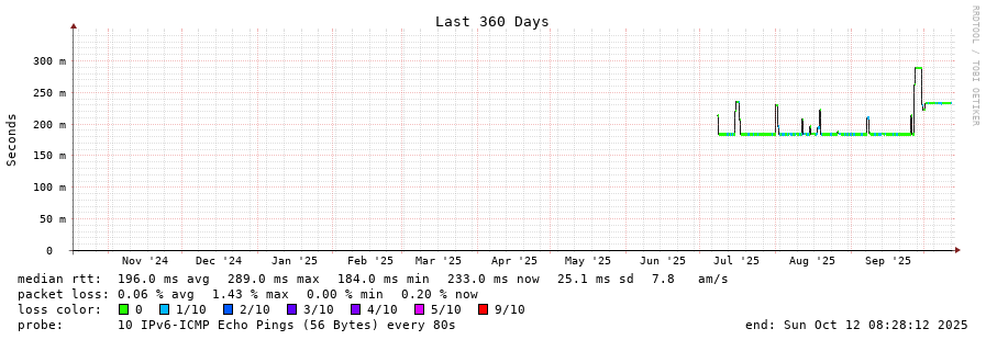 traceroute to 2402:1f00:8002:100::f72 (2402:1f00:8002:100::f72), 30 hops max, 80 byte packets - Generated at 2025-10-12 08:15:01