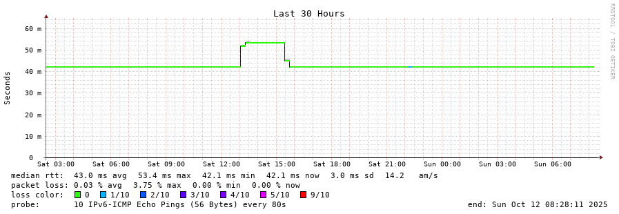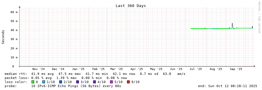 traceroute to 2604:2dc0:101:100::197c (2604:2dc0:101:100::197c), 30 hops max, 80 byte packets - Generated at 2025-10-12 08:15:01