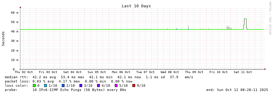 10 > 2604:2dc0:0:100::1:c9 (2604:2dc0:0:100::1:c9) [AS16276] 42.116ms 42.156ms 42.017ms