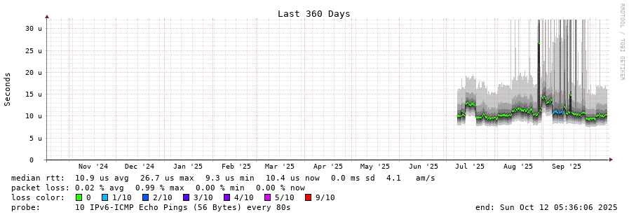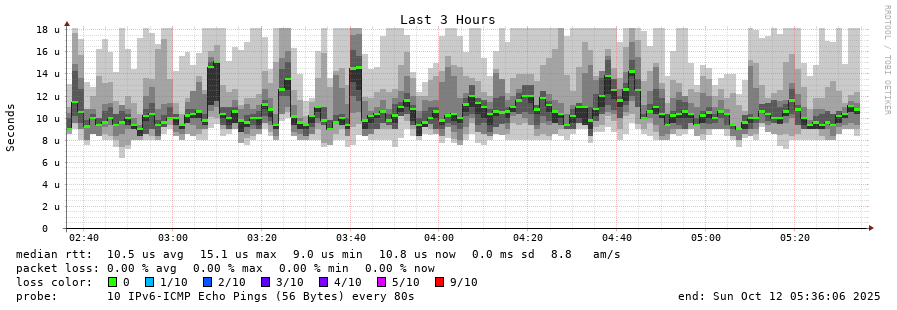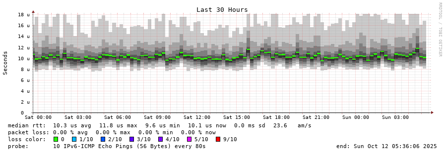 traceroute to 2604:2dc0:306::2:0:9a (2604:2dc0:306::2:0:9a), 30 hops max, 80 byte packets - Generated at 2025-10-12 05:30:01 3 > 2604:2dc0:306::2:0:9a (2604:2dc0:306::2:0:9a) [AS16276] 0.022ms 0.033ms 0.003ms