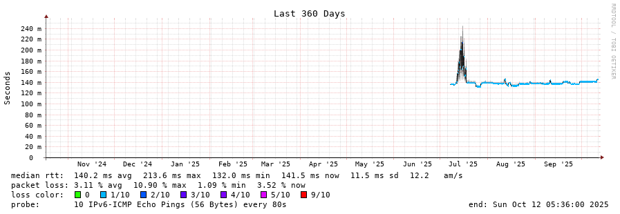traceroute to 2001:41d0:ab0a::2:0:29b (2001:41d0:ab0a::2:0:29b), 30 hops max, 80 byte packets - Generated at 2025-10-12 05:30:01