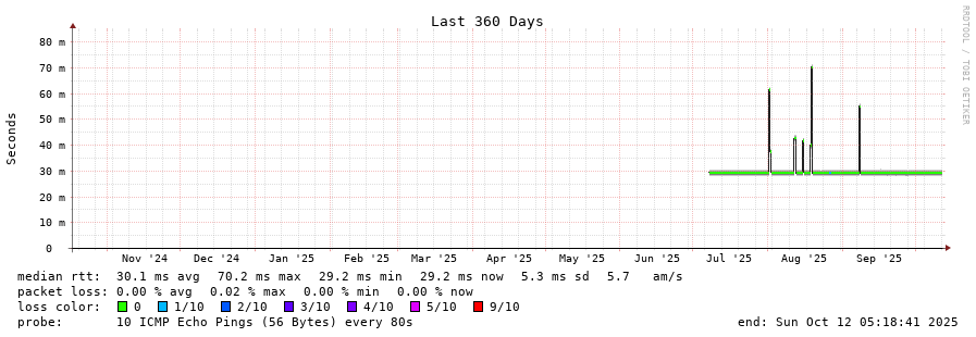 traceroute to 142.44.208.216 (142.44.208.216), 30 hops max, 60 byte packets - Generated at 2025-10-12 05:15:01 3 > 4 > 5 > 6 > lo0.pdx-prt1-sbb1-8k.oregon.us (142.44.208.216) [AS16276] 28.376ms 27.908ms 28.601ms