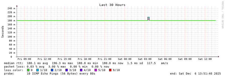 10 > 185.70.203.57 (185.70.203.57) [AS6762] 180.080ms 180.050ms 180.202ms