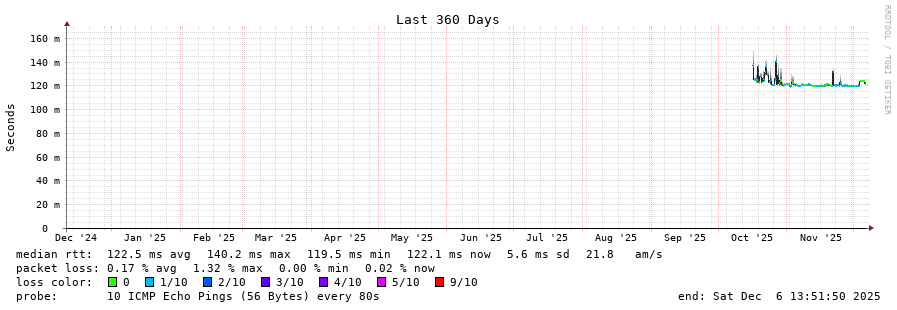 traceroute to 190.24.15.166 (190.24.15.166), 30 hops max, 60 byte packets - Generated at 2025-12-06 13:45:01