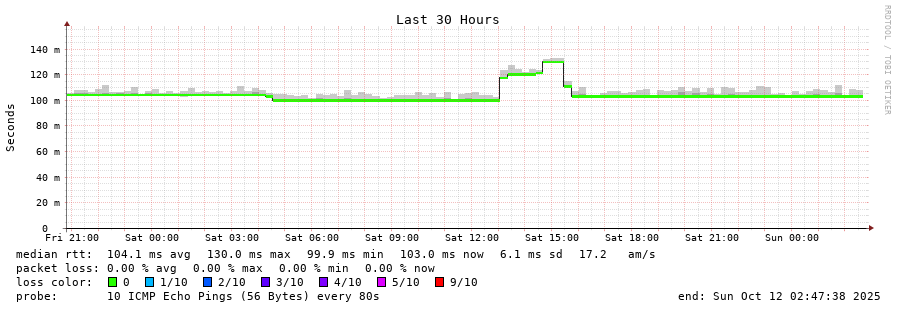 10 > 213.140.35.111 (213.140.35.111) [AS12956] 67.262ms 67.270ms 67.245ms