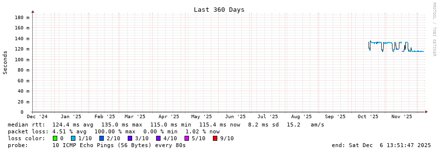 11 > 179.51.125.21 (179.51.125.21) [AS263210] 114.960ms 114.983ms 114.877ms