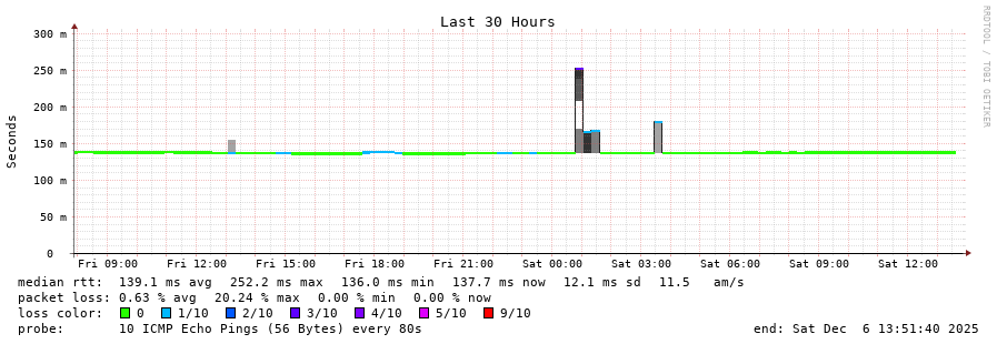 traceroute to 167.249.147.185 (167.249.147.185), 30 hops max, 60 byte packets - Generated at 2025-12-06 13:30:01