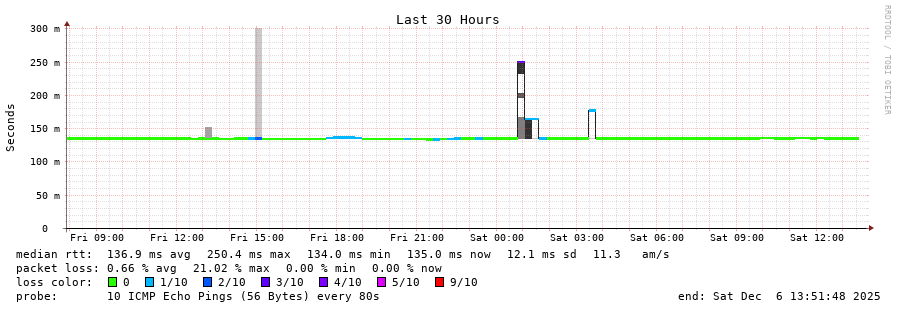traceroute to 167.249.144.136 (167.249.144.136), 30 hops max, 60 byte packets - Generated at 2025-12-06 13:30:01