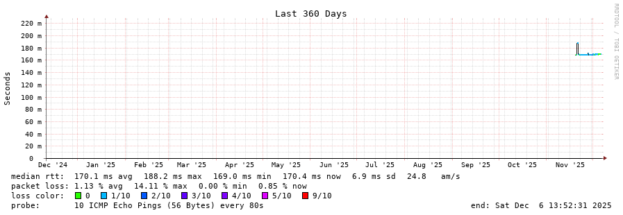 traceroute to 45.186.250.106 (45.186.250.106), 30 hops max, 60 byte packets - Generated at 2025-12-06 13:30:01