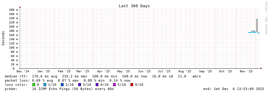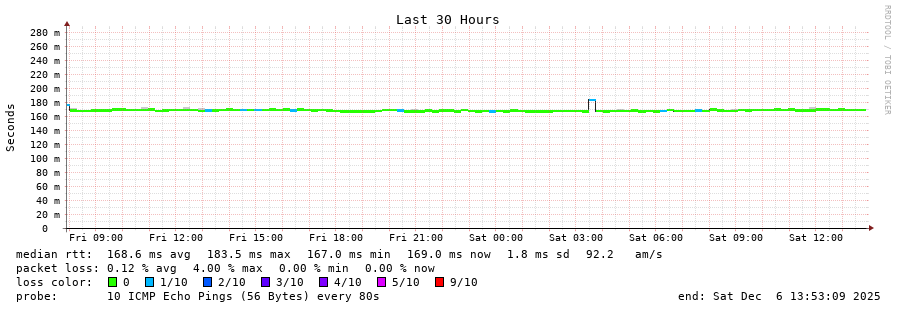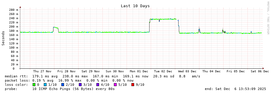 traceroute to 190.9.82.27 (190.9.82.27), 30 hops max, 60 byte packets - Generated at 2025-12-06 13:45:01