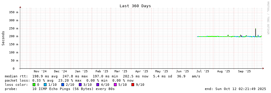 13 > 200.59.32.64 (200.59.32.64) [AS16732] 196.946ms 196.918ms 196.928ms