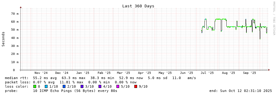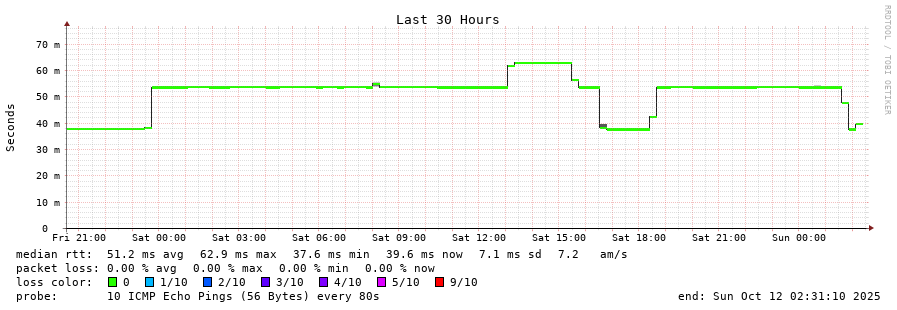 traceroute to 52.60.50.0 (52.60.50.0), 30 hops max, 60 byte packets - Generated at 2025-10-12 02:15:01