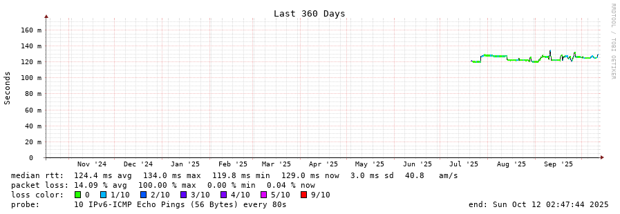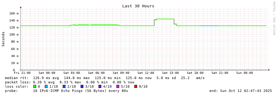 traceroute to 2001:49f0:d0b0:6::2 (2001:49f0:d0b0:6::2), 30 hops max, 80 byte packets - Generated at 2025-10-12 02:30:01