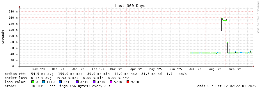 traceroute to cdns1.cox.net (68.105.28.11), 30 hops max, 60 byte packets - Generated at 2025-10-12 02:15:01