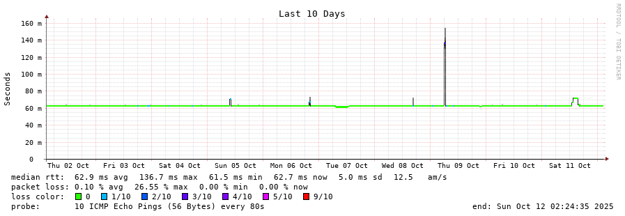 10 > 64.230.123.248 (64.230.123.248) [AS577] 61.298ms 61.427ms 61.267ms