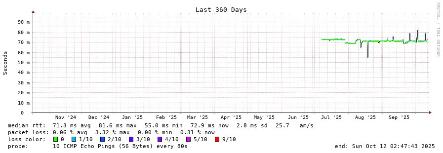 traceroute to 12.0.1.28 (12.0.1.28), 30 hops max, 60 byte packets - Generated at 2025-10-12 02:45:01